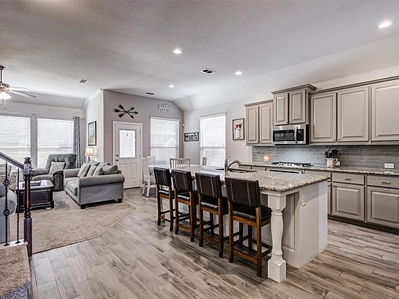 STUNNING Keller ISD home with beautiful finishes throughout! You will LOVE the wood like tile! Spacious open living, corner fireplace opens to bright dining and large kitchen with granite countertops, SUPER island, walk in pantry, gas cooktop, and 42 inch cabinets! Large private master with dual sink vanity, garden tub, separate shower and HUGE walk in closet! 3 beds, 2 full bath up with a super sized game room! Covered patio with a recent extension making room for lots of seating to entertain! Great curb appeal in a family friendly community with many events throughout the year! Private ponds, walking trails and large community pool! HOME is here waiting for your family!
