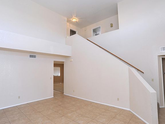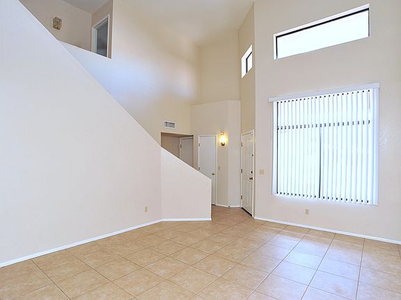 Superb floor plan with flexible bedroom/bath combo downstairs which could be used as master suite or separate guest quarters. Open kitchen concept which leads to main living area, upgraded SS appliances, new dishwasher, island, soaring ceilings, ceiling fans in every room, window coverings stay and tasteful upgraded tile throughout with carpet in all the right places. Spacious master bedroom with upgraded tile surround in master bath area with his/hers separate closets. Private balcony off master. New electric garage opener and roof recently serviced. Back yard offers extra privacy with neighbors lattice fencing, pavers, flagstone and grass add the finishing touches to this home. Bring your offers!