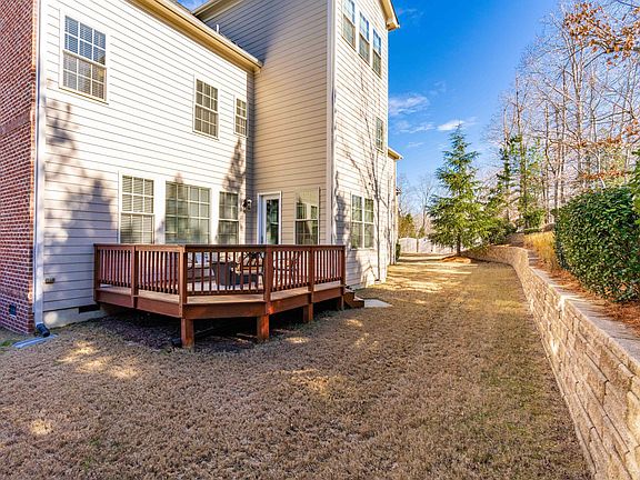 Gorgeous three sided brick, cul-de-sac home- meticulously maintained. Located in the highly desirable North Raleigh location! Enter through the grand double doors and you will find 10' soaring ceilings and hardwoods -no carpet on the first level. The first floor offers a large kitchen with granite counter tops, gas cook top and an abundance of cabinet and counter space as well as a large island. The first floor guest suite (currently set up as an office) adjoins the full bath. Upstairs you will find 9' ceilings, four additional bedrooms -all generously sized. The primary bedroom adorns a large sitting area. The 3rd floor welcomes you to a huge bonus room and additional unfinished storage space -some of which has been framed and plumbed for a bathroom completion should you desire. As you tour the home, you will find custom finishes such as crown molding and built-ins throughout . Don't forget to check out the over-sized 2 car garage and the additional 1 car cement parking pad off to the side. The tree lined backyard offers privacy. Exterior of the home was painted in 2022, Both HVAC units replaced 2022. Community offers great amenities; pool, playground, fitness room & clubhouse. The sellers are including a 1 year home warranty.