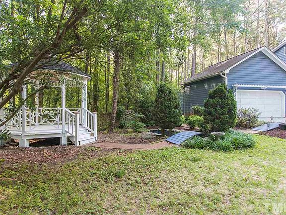 Lovely updated 4bd/2.5ba transitional home on nearly 3 acres in quiet North Raleigh neighboorhood just off Leesville Road. Large family room opens to dining room w/ cathedral ceiling. Family room w/ wood-burning fireplace opens to updated kitchen w/quartz counters & stainless steel appliances. One bedroom & updated half bath down. Second floor has large master suite w/ ensuite bath along w/ two add'l. bedrooms & full bath. Screened porch. Beautiful gardens w/ gazebo, brick walkway & fish pond.