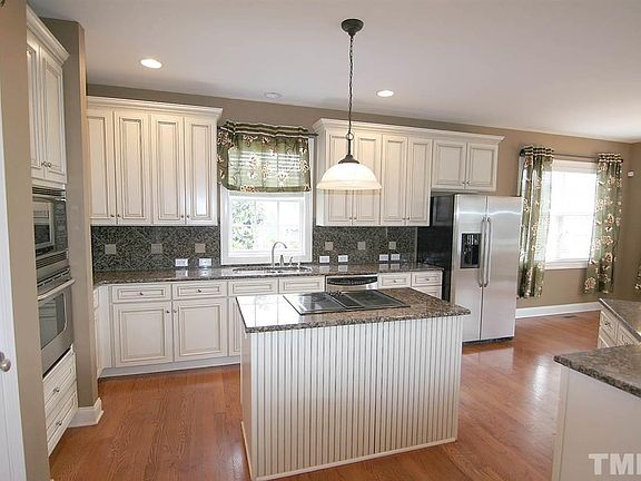 Prime N Ral Loc, Best Schools, Corner Lot Brick Front Former Model Home w/ Many Upgrades. Hardwoods, Open Kit w beautiful Cabinets, SS Appliances,granite, Island overlooking 2-story Fam rm; Large 1st Fl Master w/ Granite, Sep Shower WIC, Fenced Yard. Bonus Room w/Bar & Storage. Stone Patio w/Pergola, Irrigation;Sep Office AND 5BR. Oversized Din rm; Minutes from Shopping, I540, RTP;New carpet; New Paint throughout most of home; Great Layout for Growing Famil; HVAC's <2yrs; Ready to move in today!