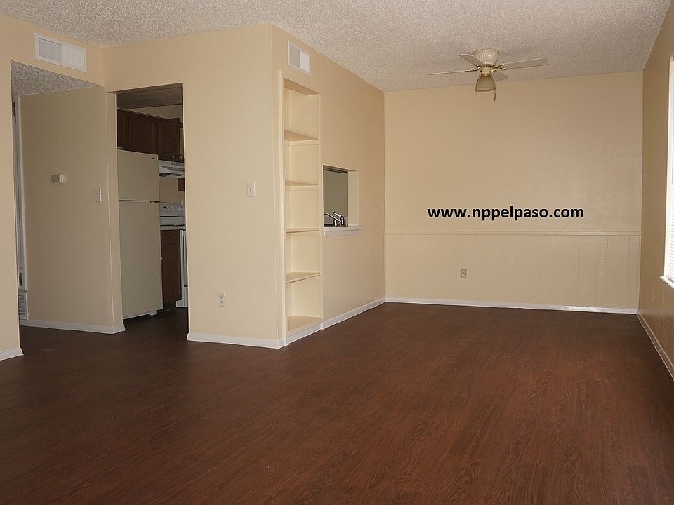 This is a 1 bedroom 1 bath apartment home in the Amigos Del Sol Community; this unit is upstairs, comes with REFRIGERATED AC and is located close to the pool area. Unit has brand new laminate wood flooring throughout, fresh new paint on all the walls and new carpet in bedroom. The living and dining area are open to each other and offer plenty of open space. Dining area comes with built ins for additional decoration and a look through into the kitchen. Kitchen comes with refrigerator, electric stove/oven, hood fan, dishwasher and garbage disposal. Bedroom is very spacious and comes with great closet space. Full size bath and large storage closet are located in the hallway. *(Amenities pictured might be different from those of the available unit) Please call or text Lisa at 915-256-9129 or Dale at 915-490-9278 for more information. Get the rest of December Free (O.A.C) Rent $515 Sec Deposit $300 App Fee $25 ? Apply on line at www.nppelpaso.com or in person at 1321 E. Yandell Pet Restrictions Apply ? Call for Details
