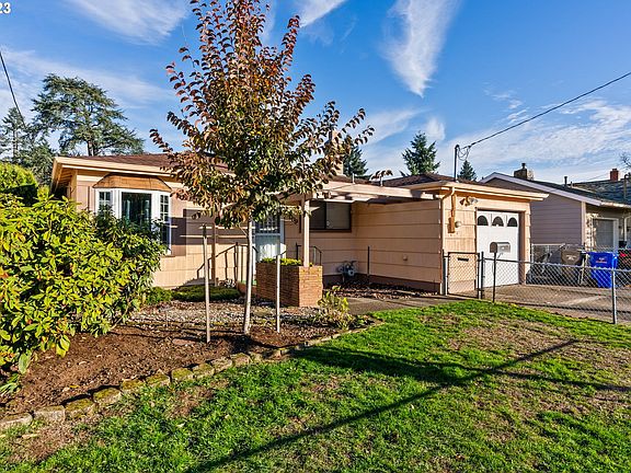 Step inside, where hardwood floors stretch from room to room. Freshly painted walls breathe new life into every corner, as if welcoming you with open arms. In the front room, sunlight filters through double-pane windows, casting a warm glow on the floor. A gorgeous brick fireplace stands its hearth inviting you to cozy up on chilly evenings. The living room is a generous space and offers a blank canvas for your furniture, The kitchen, practical and functional, features Corian countertops, a durable surface for meal prep and gatherings. A newer freestanding refrigerator (summer 2023), a double sink with disposal handles daily dishes very well, and a newer gas stove, ready to whip up family favorites and comfort food. The range hood quietly whisks away cooking aromas, and wood cabinets hold secrets of forgotten recipes. In the nook area is great place to serve up your meals. The remodeled bathroom boasts quartz c Toto, (2022), blesses the porcelain throne. A spacious vanity with newer fixtures, a full shower and tub, surrounded with glass doors, and a built-in medicine treasure. In the hallway, an extra-large linen closet stands ready, shelves stacked with towels and blankets. The 1st bedroom, with its hardwood floors, double closets, cradles dreams in its sturdy embrace. Two windows frame the changing seasons, and an overhead fan stirs the air. The 2nd bedroom echoes the first, its double closet a keeper of memories. The bonus room with Vinyl floors lead the way to tons of storage. The garage, a haven for tools and tinkering houses a newer Trane 95% efficiency gas furnace (2020), air purifier Overhead shelving and a workshop area, newer electrical panel (2022) plus newer garage door. Newer main water line installed (2022) offered RV parking is so very nice with 2 gate access to side and backyard. Chained link fenced yard, numerous lovely plants trees, garden areas, big patio area plus a large outdoor shed. This home is close by shops, buses, parks, and so much more.