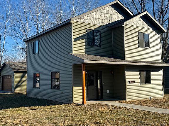 A True Two Story. This new construction home puts all the square footage to work! Open concept living/dining/kitchen area. Luxury vinyl flooring, kitchen center island, stainless steel appliances, wood and black iron stair baluster, black framed windows, tasteful lighting fixtures. Main floor quarter bathroom, laundry in spacious mudroom/back entry. Upper level boasts three spacious bedrooms with vast natural light. Full bathroom with private bath tub/shower/ toilet area. Covered front and back entry, sidewalks, 22X24 detached garage. Walking distance to Lindbergh State Park for hours and hours of recreation! You are going to love this Fresh, New Home!