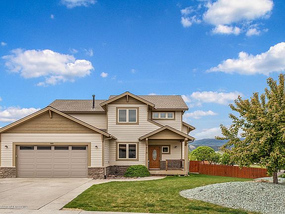 All NEW APPLIANCES! Brand new stainless steel fridge, 5 burner natural gas stove, dishwasher and microwave just installed prior to listing! 4 bed/3 bath home with gas fireplace with stone surround, granite slab counter, hardwood floors, 9 ft ceilings and fresh interior paint. Huge concrete tiered patio surrounded by almond, apricot, apple, peach, nectarine, plum and pear trees. Fully fenced back yard, behind fence parking for toys and storage shed to keep the garage open! Close to Graham Mesa Elementary.