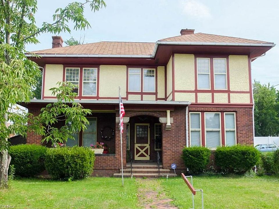 Beautifully preserved 4 bedroom, 1.5 bath century home with a 3-car detached garage! Wonderful history in these walls! Gorgeous English Tudor once belonging to the Tilden family, famous for many historical buildings throughout Canton. As soon as you walk in, you'll notice the beautiful wood flooring, wide baseboards, lovely woodwork and high ceilings throughout, giving the home a spacious, open feel. Greet your guests in the inviting foyer and head into the formal living room boasting crown molding, original stained glass and a fireplace framed by built-in nooks with storage. The eat-in kitchen has an awesome corner bench and comes applianced with a refrigerator, oven and range. Large 15x12 formal dining room, great for entertaining! Upstairs, all 4 bedrooms have tall ceilings, wood flooring and wide baseboards. The beautiful master bedroom features a wall of windows which illuminate the room and will make a morning person out of anyone. Full bath upstairs with a pedestal sink and convenient half bath on the main level. Ample storage in the full basement, too. Outside, you'll enjoy the covered front porch and the large backyard with a fenced-in area. This home is full of charm! Call today to schedule a private showing!