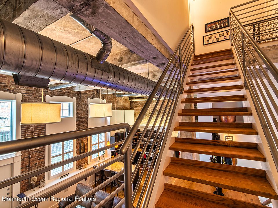 Calling all industrial loft buyers! Now is your chance to own one of the rarely available 2 bed 2 1/2 bath lofts with approximately 18' ceilings, private backyard and 2 assigned parking spaces in Asbury Park! This home has the wow factor from the moment you walk in the front door with exposed brick, ducts, approx. 18' concrete ceilings, concrete columns and a breathtaking modern staircase to the 2 large bedrooms upstairs, both with full en suite bathrooms. The flooring is a 5'' natural oak plank. The open kitchen features stainless steel GE Cafe' appliances, under cabinet lighting, and pendant lighting above the bar area. A full size GE washer and dryer in the loft and plenty of closets and storage throughout. The private backyard is great for grilling, pets, or even a hot tub. The building has a secure gated parking lot, elevator, and common roof deck. This unit contains an ADT security system.