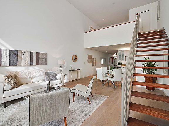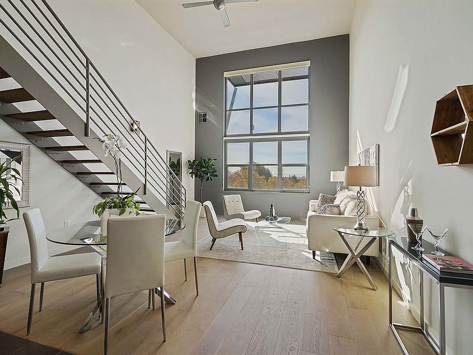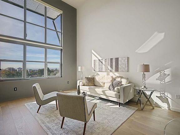 Enormous Vue46 Loft with 2-Car Parking. Welcome to Home 507 at Vue 46, an enormous 2 bedroom plus den, 2 bathroom loft with elegant upgrades and a spacious floor plan. This large loft features views spanning Downtown Oakland, the Bay Bridge, and a portion of the San Francisco skyline. Loft 507 offers a separate office/den and spacious living areas. One of the larger lofts in the building, #507 features a flexible floor plan of approximately 1,550 sq. ft. (per seller) over two levels. There are huge full bathrooms on each level. If you are an art lover, this home is the perfect space for you; with a sprawling floor plan and double-height ceilings, there is ample room for large art pieces. 9