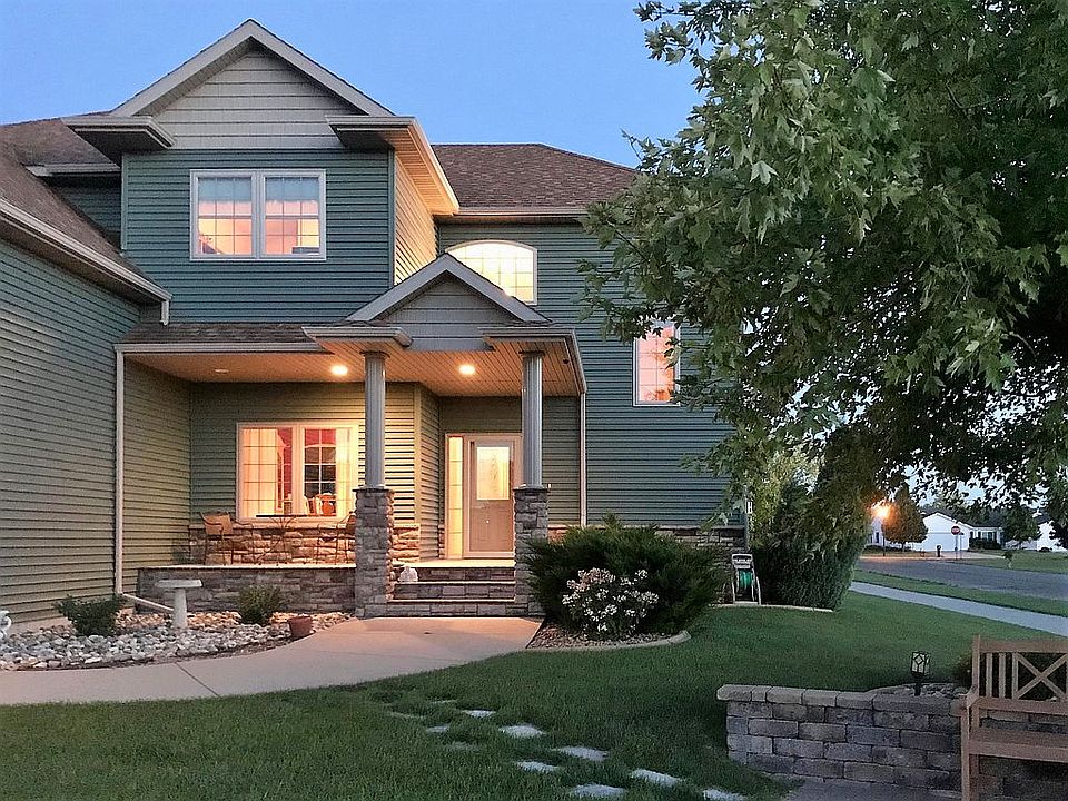 Showings upon request, buyer agents welcome. This home was built in 2007 by BMW. The professional landscaping, completed in 2008 includes underground sprinklers. BMW came back in 2010, to finish the basement. Both the main floor and basement are wired for surround sound. The forced air heat and A/C are two-zone temperature controlled. There is a hot water circulation pump. The basement has double-well sump-pumps with battery back-up. The three stall garage is completely finished and heated. The main floor has a two-story living room with gas fireplace. There is a front entrance coat closet. The remainder of the main floor has 9 foot ceilings. There is a formal dining room and a casual eating area. This kitchen has cabinetry includes a wine rack and serving counter with tile backsplash. The main floor is completed with a mud room and closet, half bath, and laundry room with sink. The upper story contains 4 bedrooms and 2 full baths. The master bedroom has a window seat and a tray ceiling. There is a walk-in closet including shoe shelving. The master bath has two vanities/sinks, a large jetted tub, and a separate shower. Bedroom number 2 is currently being used for an office and has a great view out the front. The ceiling is vaulted and there is wood laminate flooring. Bedroom number 3 is above the garage. It also has a terrific view of the park and pond from its huge window. This room has its own walk-in closet. Bedroom number 4 has an East facing window. There is also a hall closet. The basement has a family room with another gas fireplace. There is a wet-bar with cabinetry that has custom stained glass. There are two more bedrooms, one with a walk-in closet, and a full bath. The utility room has plenty of built-in storage.