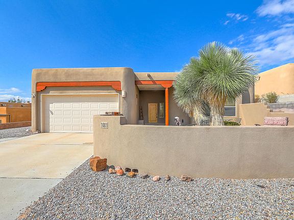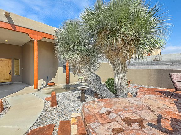 Wow!! This semi-custom home is a great balance of style and function. The home boasts a large open living room with tall beamed ceilings, kiva style fire place, and nichos. The home sits on a 1/2 acre of usable land with backyard access and a small workshop, with electricity. The front courtyard has amazing mountain and city-light views. Don't miss this great opportunity.