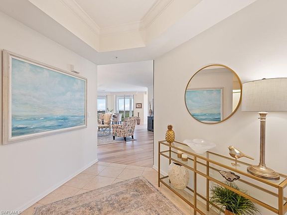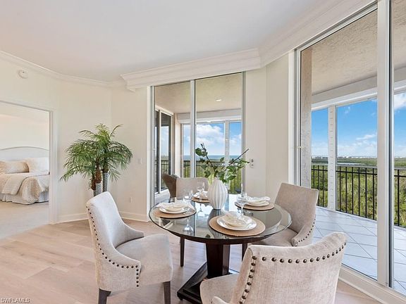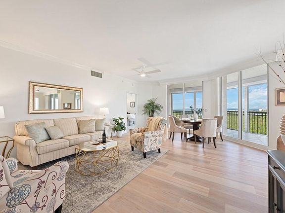 This gorgeous 3 bedroom 2 & 1/2 bath sought after end unit has unobstructed views of the Gulf of Mexico and Little Hickory Bay. Located on the 12th floor it features a wraparound lanai for outdoor living. This spacious home showcases natural light, thrilling sunset skies, picture windows, new flooring, electric storm shutters, ample closet space. This home also features a TWO CAR GARAGE located next to the main entrance and attached to the tower! A Naples hidden gem, Arbor Trace offers a friendly, abundant lifestyle spanning 40 acres along the Gulf Coast. Amenities include full service dining room, private fitness center, highly rated Assisted Living Residences, library, beauty and barber salon. Enjoy fine dining at the 36,000 sf clubhouse as well as social, cultural, recreational, educational programs, putting greens, horseshoes, shuffleboard, bocce, tennis/pickleball and an outdoor pool & spa. Arbor Trace offers convenience with peace of mind services including a 24 hr medical monitoring system, transportation to medical obligations, concierge services, shopping and group outings. Optional housekeeping & maintenance services at your fingertips. Visit today!