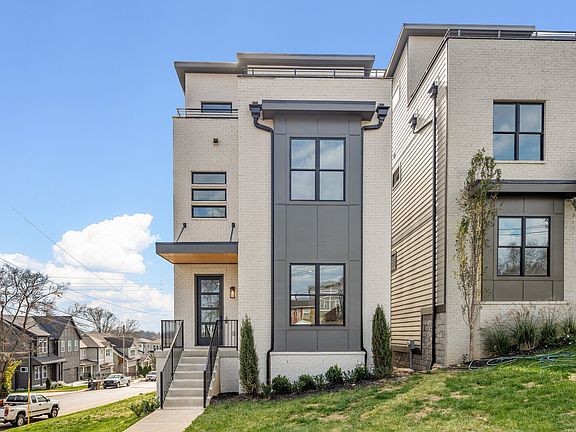 Remarkable new construction by Hidden Trail Construction. Located conveniently between 12 South & the Gulch. This Edgehill development is made up of 8 modern homes with views of the rolling hills, Geodis Park & Belmont University. The home includes an elevator, two car garage, two huge rooftop decks, and spacious bonus room on the top floor. LARGE side yard. Custom features such as built-in surround sound, tankless hot water heater & recirculation. Top floor includes a wet bar with dishwasher and ice maker, bonus room with full bath, and a huge covered rooftop entertaining space. Check out additional upgrades in attachments!