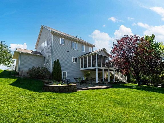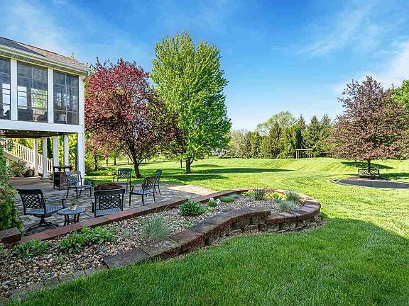 Truly amazing home on nearly a one-half acre lot with many updates throughout. The location is also one not to be beat with nearby elementary, walking trails and ponds. This two story home fills with natural light from the many windows. The great room has tall ceilings, built in cabinets and a gas fireplace. There is a first floor formal dining room or office. The kitchen will impress with plenty of cabinetry stretching to the ceiling, desk area, granite counters, upgraded appliances including induction cooktop and double wall oven. In addition to all the kitchen storage is a walk in pantry. The main floor laundry has cabinets, countertop, wash sink and additional shelving. Upstairs are 4 generous sized bedrooms. The hall bath features a double vanity. The Primary Suite is oversized with a sitting area and walk-in closet. The ensuite bathroom has been remodeled with tile shower and stand alone soaking tub. Lots of good storage including linen closet. From the Kitchen sliding glass doors open to a 3 seasons room with tremendous views of the large yard and trees. Next is a large deck with stairs to the lower patio and yard. The in-ground trampoline can be fun for everyone. Featured in the lower level is a second fireplace with stone facade from floor to ceiling. There is a spacious family room with walkout to an oversized patio. Another large storage room with built in shelving. There is a dual HVAC system, one replaced in 2018. Additional updates include Water Heater 2021, Carpet main/up 2023, double oven 2023, dishwasher 2021, Refrigerator 2018, Tiled primary Shower 2024, Roof 2019, Deck 2020, EZ Breeze windows 2020, Front railings/Fascia/door paint 2023.