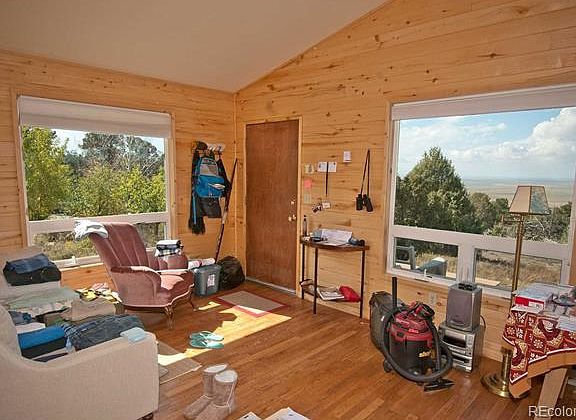 Unique opportunity to own a small but well located home in the Baca up high with extraordinary panoramic valley views. This 905sf one bedroom home can serve as a full time residence, part-time get away, retreat home or rental. Durable and low-maintenance Trex view deck off the front, oak hardwood floors inside, passive solar, electric baseboard heat and wood stove. Extra room off kitchen can be easily converted to mudroom or study/office. Separate laundry/storage room. Adjacent lots are consolidated with house on 1003 for privacy.