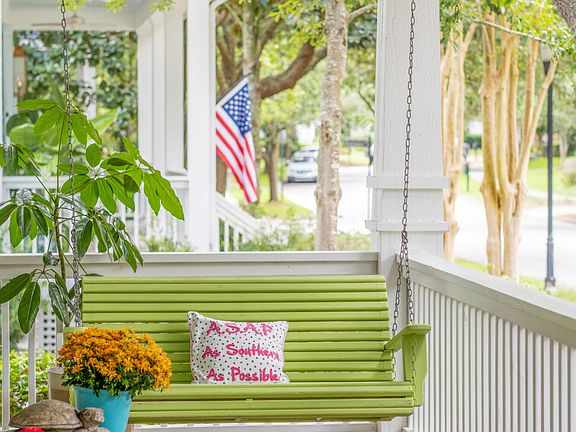 Adorable and colorful Island Cottage with bright sunroom addition in the heart of Daniel Island's Center Park! Everything on the main floor and plenty of ways to enjoy the South Carolina weather with the Southern trifecta of porch, patio and courtyard!As you enter through the emerald green front door, you'll be greeted by 10-foot ceilings and two bedrooms, a shared bathroom and a laundry room just off the front foyer. The floorplan opens up to the central part of the home, featuring an open kitchen, living, and dining area with oak flooring. The spacious living room accommodates ample seating and includes a gas fireplace with shiplap accents and built-in shelving.The u-shaped kitchen boasts white cabinets, white/gray speckled granite countertops, stainless steel appliances, and a pantry behind a door. Adjacent to the kitchen, the dining area comfortably fits a six-person table. Expanding the living space, there's a recently renovated, separate split unit/climate-controlled, and tiled sunporch. This bright and airy room is adorned with shiplap walls and offers a cozy space for morning coffee or perhaps an added work desk area with views of the courtyard. Just off the kitchen is the spacious owner's suite with tray ceiling, which leads to the bath of dual sink vanity/storage cabinetry with soaking tub and shower. A walk-in closet off the bath completes the suite. Situated on a corner lot and surrounded by live oaks, magnolias, myrtles, and camellias, the landscaping showcases some of the South's classic plant varieties. Outdoor living options are plentiful, from the welcoming front porch to the private tabby patio courtyard or the stepping stone patio in the backyard. A double car garage and two car driveway completes the lot. This cottage is conveniently located just steps away from multiple parks, including Smythe Park, Daniel Island K-8 school, neighborhood tennis courts, and the Berkeley County Library. Enjoy the full spectrum of amenities that Daniel Island offers, including three HOA pools (one heated year-round), numerous walking trails, restaurants, shops, and a grocery store. And don't forget about CreditOne Stadium, which hosts world-class concerts and the women's professional ATP tour stop every April.