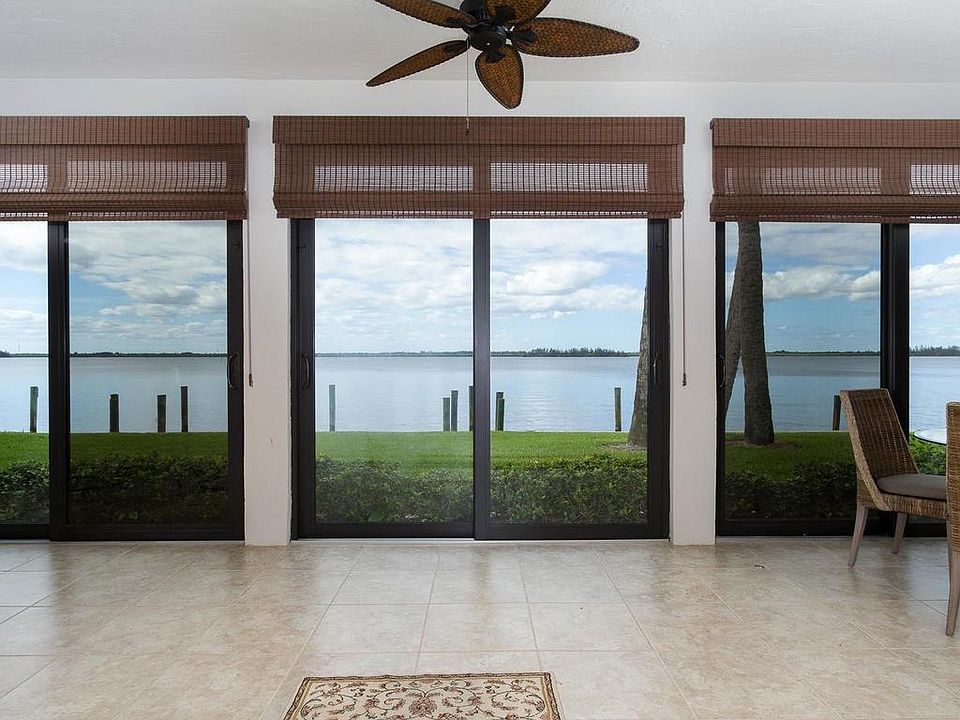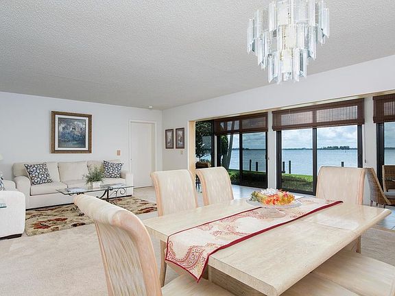 Seller Encourages Offers! STUNNING "Forever Views" beckon as you enter! First floor spacious plan with2 BR, den, 1 car garage plus storage, private guest BR, courtyard & amazing river, sunset, wildlife views. Updated kitchen, bathrooms and impact glass sliders. Walk out your back door & fish off your dock. Heated pool and access to private Moorings beach. 1 PET-NO WEIGHT LIMIT.