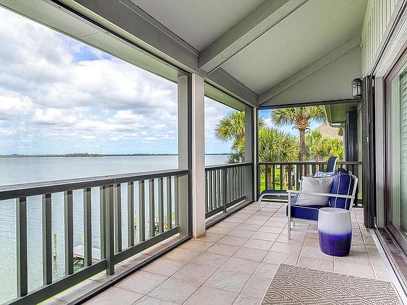 A top floor jewel - one of the most beautifully updated riverfront condos offered at the Moorings. Immaculately updated, numerous built-ins including a full bar, book cases, new impact windows, sliders & shutters added for double storm protection on the river side. Endless views of the river, sunsets & wildlife. Heated pool & access to the Moorings private beach. 1 pet with approval.