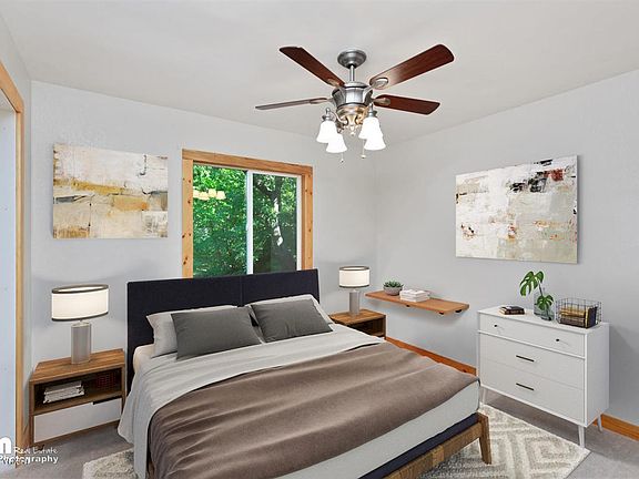 Freshly painted inside & out, updated and ready for a new owner! Conveniently located near shopping, JBER, park and highway. Super cute home situated at the end of a street next to a trail and creek. Home has updated kitchen with solid surface countertops, tall soft close cabinets and on demand hot water dispenser. Extra large walk-in pantry with built in storage shelving. Spacious 10x10 bedrooms.