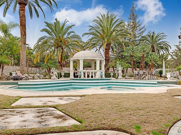 Amazing home in Seven Oaks! This 4 bedroom 3 bathroom home with living room and separate family room is loaded with custom features. The kitchen includes granite countertops, stainless steel double ovens, trash compacter, under the counter wine refrigerator, dishwasher, 6 burner stove top w/range hood at island, which features a unique black leather granite counter top surface. The Master suite features a dual fireplace, double vanity sinks, jetted tub and separate shower, as well as a custom walk-in closet... Beautiful front & rear landscape on a huge lot awaits you outdoors with tropical trees, and a colorful array of fragrant flowers & plants. The rear landscape includes a dome gazebo, decorative statues, sparkling pool with fountains and a spa! Don't miss out on this opportunity. Call for your private showing today!