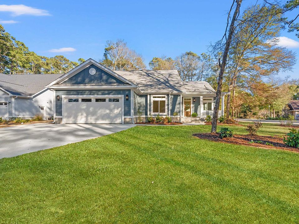 Beautifully appointed and upgraded NEW Construction in desirable Tidewater Plantation. This custom home sits on a large corner lot on a cul de sac in The Bluffs section of this popular golf course community. The extra-large garage opens into a functional laundry room with custom drop zone and folding station. The home flows efficiently, with the large custom designed kitchen as the heart of the home. Complete with a large dry island with tons of storage, a coffee bar, custom pull-out pantry cabinets and window overlooking the screened-in back porch and spacious backyard, it's perfect for preparing meals and conversations. The Primary Suite has custom lighting, tons of storage and a stunning Wet Room. The extra-large primary closet includes access to the laundry room for convenience. Dining and living room space combine to make entertaining a breeze. A sunny pocket office, two large guest bathrooms and custom tiled guest bathroom with zero entry, tiled powder room and large front porch completes the space. Tidewater Plantation offers 24-hour guard-gated security, clubhouse with restaurant and pro-shop, tennis courts, pickle-ball, fitness center and pools. Owner's also have access to a private ocean front cabana.