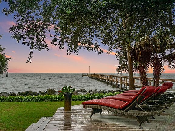 Welcome to your dream home located in Bonneau Beach, offering breathtaking views & deep water access on Lake Moultrie. This exceptional .56 acre lakefront property spans 2,964 sq. ft. and is designed for both luxury living & entertaining. Enjoy the generous living areas, including a sunroom filled with natural light, and a cozy great room with a fireplace. The kitchen features granite countertops, gas cooktop, double wall oven & a casual dining area. Perfect for family meals & entertaining guests. The spacious master suite offers a private fireplace, expansive master bath with a double vanity, separate tub, & a stand-up shower, providing a serene retreat. A large laundry room provides practicality and additional storage space. Roof replaced in 2011.Three comfortable bedrooms & 2.5 well-designed bathrooms ensure ample space for family and guests. Step out onto the massive back deck that overlooks the lake, perfect for outdoor dining and relaxation. The beautifully manicured yard leads to your private dock and boat slip, making water activities effortless and providing the perfect outdoor oasis. The property includes a 4-car detached garage (electric garage door app) with one bay designed as a drive-thru, providing convenient access to the boat slip in the backyard. The private gated entry enhances security and adds an element of exclusivity to your home. Enjoy the convenience of being just minutes away from public boat landing, restaurants, and other local amenities. This exceptional lakefront property offers a unique blend of luxury, comfort, and convenience. Don't miss your chance to own a piece of paradise on Lake Moultrie. Schedule a viewing today and experience the unparalleled lifestyle this home has to offer! Home is being sold "AS IS" New heat/Air unit being installed in Sunroom.