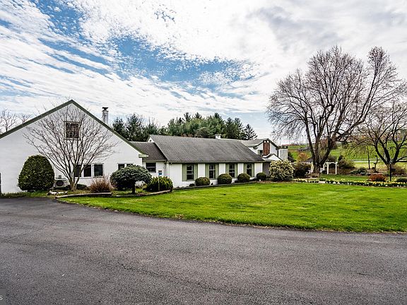 This Chester County property on 11+ acres offers 5,000 square feet for a unique buyer searching for an estate to accommodate a family home, a busy office, a large barn and additional outbuildings to store and maintain machinery, and a double outhouse, tastefully maintained. The historic property has served an active family with many interests and needs over decades and, at present, offers the right buyer an opportunity to update and transform it to meet present-day needs and tastes. A stunning hexagonal room with floor-to-ceiling windows on three sides and access to a deck and gazebo overlooking a pond, complete with its own mini-beach and small boat landing is a picturesque feature. An electric log fireplace is an additional feature in this room. The sizable bathroom off the hexagonal room brings in the outdoors through a stained-glass window and includes a separate bathtub and standing shower. An oversized recreation room, complete with beamed ceiling, fireplace, built-in shelving, pool table, and wall-to-wall carpeting can accommodate small wedding parties, catered dinners, or large family gatherings. A modest kitchen and a dining area with a view of the property’s mature trees and landscaped gardens offers a walk in fireplace that houses a free-standing antique stove, and plenty of cabinets-- in both cherry finishes and the home’s original farmer’s kitchen style. Additional spaces for living or dining rooms, office and reception areas allow for flexibility and invite creative repurposing. The second floor, part of the original house, offers three bedrooms, a kitchenette, a bathroom with shower, access to an attic, and walk-in closets. The estate, once the home of a contractor who ran a Christmas tree farm as a side business, sits far enough from a state route to provide the privacy and feel of rural living.