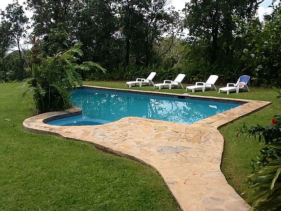 For Sale by Owner. Unique 7b, 7.5ba B&B with swimming pool and 5* reviews. Separate apartment on 25 acres of lush rainforest land with over 30 varieties of tropical flowers for cutting and selling to local hotels and conference centers. Complete privacy on the top of a mountain but only 15 minutes away from amenities and tourist attractions. 1 hour from San Juan. Over 3 miles of trails with a stream and 100% solar powered with water collected from rain and stream, (electricity and water ALL the time!). Main building has beautiful bar and kitchen with wood burning oven, stove and full fridge freezer. Dining room, social areas, library, decks and a swimming pool with solar powered filter system. Separate building with 2b, 2ba kitchen living room and deck, (needs a little tlc) and space for 4 more rooms on second floor. Permit for additional ‘cabañas’ on property increasing revenue and attraction.