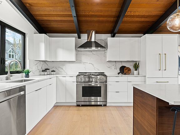 Stunning Lake Oswego Mid-Century with breathtaking mountain views! This custom built day-light ranch home has been remodeled with luxury designer finishes. Features include chef's kitchen with gas range, built-in fridge/freezer and oversized island. The owners suite features a designated heating/cooling system, walk-in closet, spacious shower and soaking tub. Lower level features an additional primary suite, entertainment room, custom built bar, temp. regulated wine room and an oversized deck.
