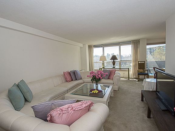 Wonderfully bright 1 bedroom 1 bath unit in the coveted EAST building with stunning sunrise and sunset views. This unit, which CAN include the coveted 1st GARAGE PARKING SPOT straight across the lobby for an additional $5,000.00, is surrounded by neutral fresh paint and quality carpeting thru out. Eat in kitchen and dining room overlooking sliders to balcony which oversees spectacular sunny tree top views. Terrific custom closets and lots of storage. In-unit laundry. Cable Ready. 1st Unit off the elevator (without the noise) makes this a pleasure for those not wanting to walk the long halls. Condo fee covers all utilities but cable. Being sold with or without furniture. Condo Fee $591.00 a month. Deeded parking space(if purchased)additional $125.00 per month. 24 hour security, courtesy bus tennis courts, professionally manicured grounds, library, social rooms and active social clubs. Indoor & outdoor swimming pools and health club available for a fee. Conveniently located to shopping, major roads, public transportation. Two month's capital contribution due at closing. $150 move-in fee and $500 elevator fee for moving in is also due. The $500 elevator fee is refundable if no damage. Contact agent regarding assessment.
