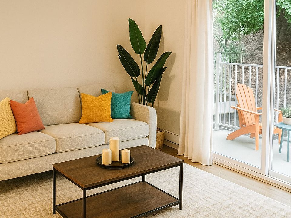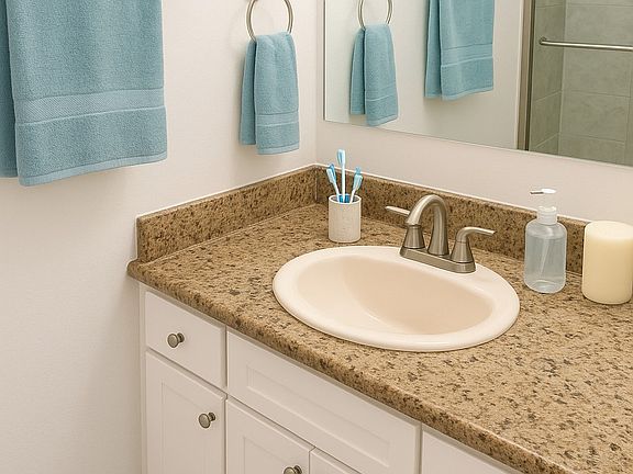 - Exterior features: Balcony, Barbecue, Crown Moulding, Dual Pane Windows, Each apartment is assigned one covered carport parking space, Flooring: Laminate, Glass Shower Doors, Granite or Quartz Countertops, Heating: Electric, Lots of Light, Monthly Lease, No Utilities included in rent, On-Site Management, Online Maintenance Portal, Online Rent Payment, Quartz or Granite Countertops, Top Floor Apartment, View Type: Wooded, Water Feature