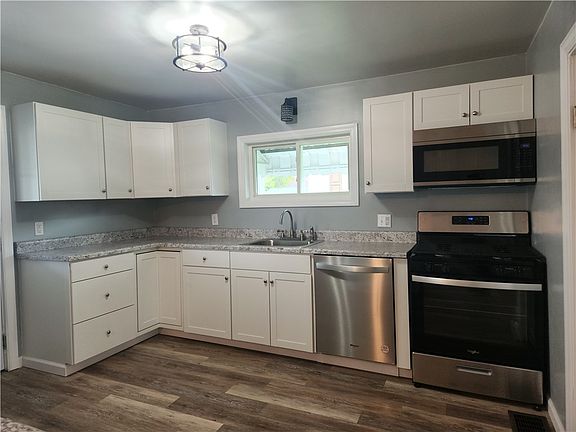 Move right into this newly remodeled home in the Vandergrift Heights! New roof, new windows, new kitchen, new bathroom, new flooring, updated electrical, new drywall, freshly painted, covered front and rear porches! Corner lot. Detached garage plus off-street parking. Exceptionally low taxes!