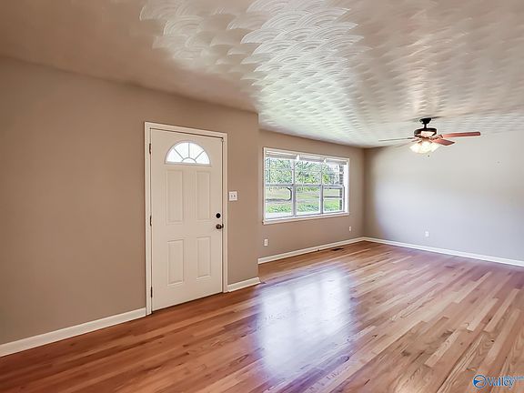 Cute! 2 bedroom 1 bath Brick Rancher In Hartselle School district , No Carpet Original Hardwood in Bedrooms and Living Room Kitchen features white cabinets and neutral countertops and separate eating area. HVAC 2013 Goodman. Move in Ready