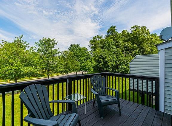 Top of the Hill at Sterling Woods, Beautiful End Unit Beechnut Model. 2 Bedrooms, 2 1/2 Baths, Finished Walkout Lower Level and One Car Attached Garage. Open Spacious Tiled Kitchen, Granite Counters, Lots of Cabinets, Pantry Closet, Bow Windows. Open to Dining Room and Living Room with Gas Fireplace and Sliders to Deck. Full, Transom Windows and Landing as you Walk up to 2nd Floor. Master Bedroom has Vaulted Ceiling, Walk-In Closet plus "Regular" Closet. Full Bathroom with Double Vanity Sinks and Tub Shower. 2nd Bedroom as Well. Washer and Dryer Between. LL Family Room with Windows and Sliders, Walk Right in From Garage, Closet with Some Storage. Zoned Gas Utilities, Central AC. Fab Clubhouse with Kitchen, Great Room with FPL, LL Gym, Pool, Play Area.