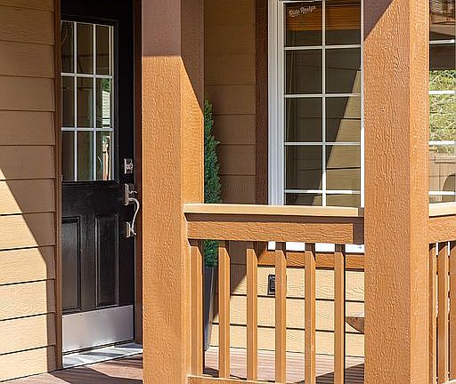 - Exterior features: Stone, Wood products