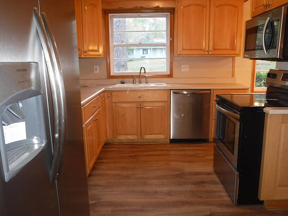 Newly renovated brick tri-level home on large lot with brand new roof. Inside features 4 bedrooms and 2 bath. New interior paint. Home opens to spacious living room/dining combo with wood fireplace, and new wood laminate flooring. Kitchen with updated cabinets and new refrigerator, oven/range, microwave and dishwasher. Kitchen is eat-in with new wood laminate floor. Lots of natural light with nice view of backyard from living area. Upstairs are 3 nice-sized bedroms with hardwood and 1 full bath upstairs that is tiled with tub/shower combo. Lower level has largest room that would be good for the master bedroom or addl living area and has new carpet. Bath with shower only. Large laundry room. Side parking area or could be used for patio area. Large fenced backyard area. City water/city sewer. GA Power. Hot water heater is gas. Great home for size and location. Call today!!!