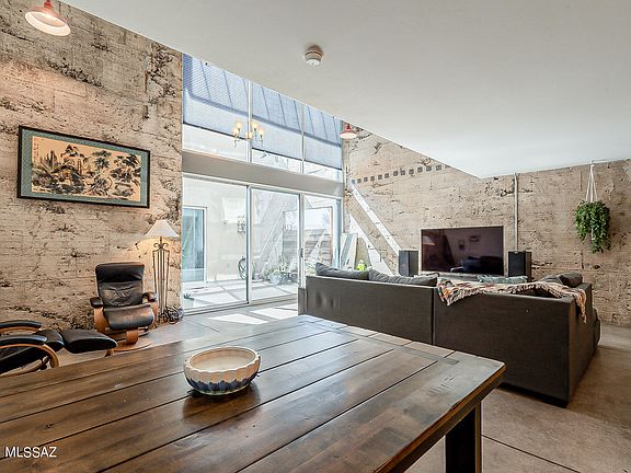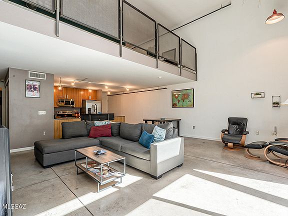 * Unique Industrial living in gated Ice House Lofts Condominiums. Minutes from thriving downtown Tucson, I-10, and U of A. This one bedroom two bath, bright and airy loft features a separate 539sqft. one room artist studio/guest house that may be used as an extra office or living area. One of only three lofts to include a private courtyard. Exposed concrete walls, steel and wood beams, granite countertops, concrete and wood floors bring this loft together with a modern yet historic feel. Separate storage unit, community pool, spa, and gym. Gated community includes two reserved parking spaces (1 covered). One Personal storage unit is on E. side of community property and is approx. '6x4'10.