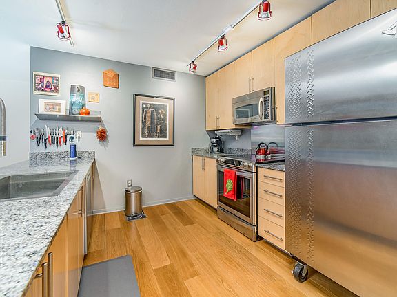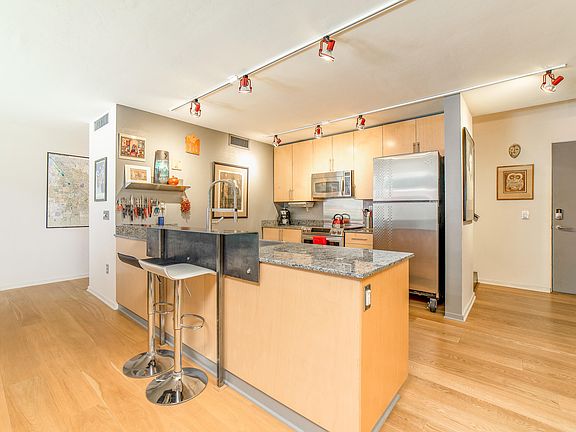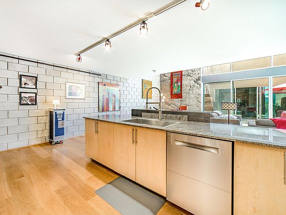 This one of a kind Ice house loft with ART studio / guest house has been restyled and remodeled ($65,000+ Upgrades) in keeping with the feel of the Industrial design. The kitchen has upgraded appliances, fixtures and blue eye granite counter tops. Bathrooms have been upgraded with custom stainless steel toilets, basins and fixtures and glass wall in the shower. Main level has been completely laid with engineered hardwood floors. Modern one bladed ceiling fan adds an elegant touch to the large living space with soaring ceilings and unfinished exposed concrete and masonry walls. Art studio / guest house has kitchenette and bath w/shower & a private entrance to courtyard from outside area. 2 assigned car spaces, 1 covered 1 uncovered and street guest parking. Close to streetcar & downtown.