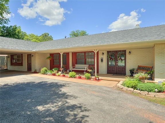 Beautiful white brick home on a corner lot, gorgeous yard and landscaping! This home has so much room for your family. 4 bedrooms, 3-1/2 baths with 2 living areas. The extra living area has a wood burning stove for those cold Oklahoma nights. The house has an abundance of storage! Large laundry room with a sink. Back patio area with new deck around the pool, perfect to entertain friends and family this summer! This property is a must see!