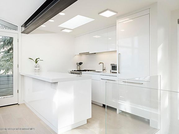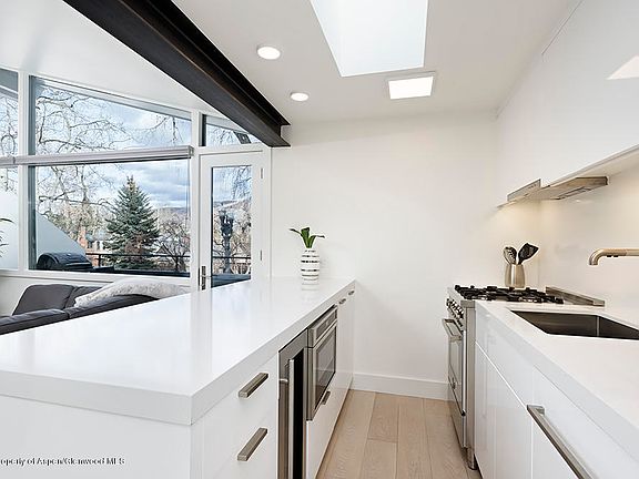 Completely remodeled in 2020 with a brand new kitchen, bathrooms, all new mechanical systems, flooring, lighting, all the bells and whistles! Fantastic opportunity to own the largest unit in the coveted Villager Townhomes. This two-story corner unit features vaulted ceilings, abundant natural light, skylights, views of Aspen Mountain and a wrap around balcony. High-end finishes including a steam-shower, custom cabinetry, smart storage, and more. Located five blocks from the Aspen Mountain Gondola and just two blocks from the supermarket, you can leave your car in your assigned parking spot and walk everywhere! This home is turn-key and offers very reasonable HOA dues, flexibility for rental income if that is of interest to you.