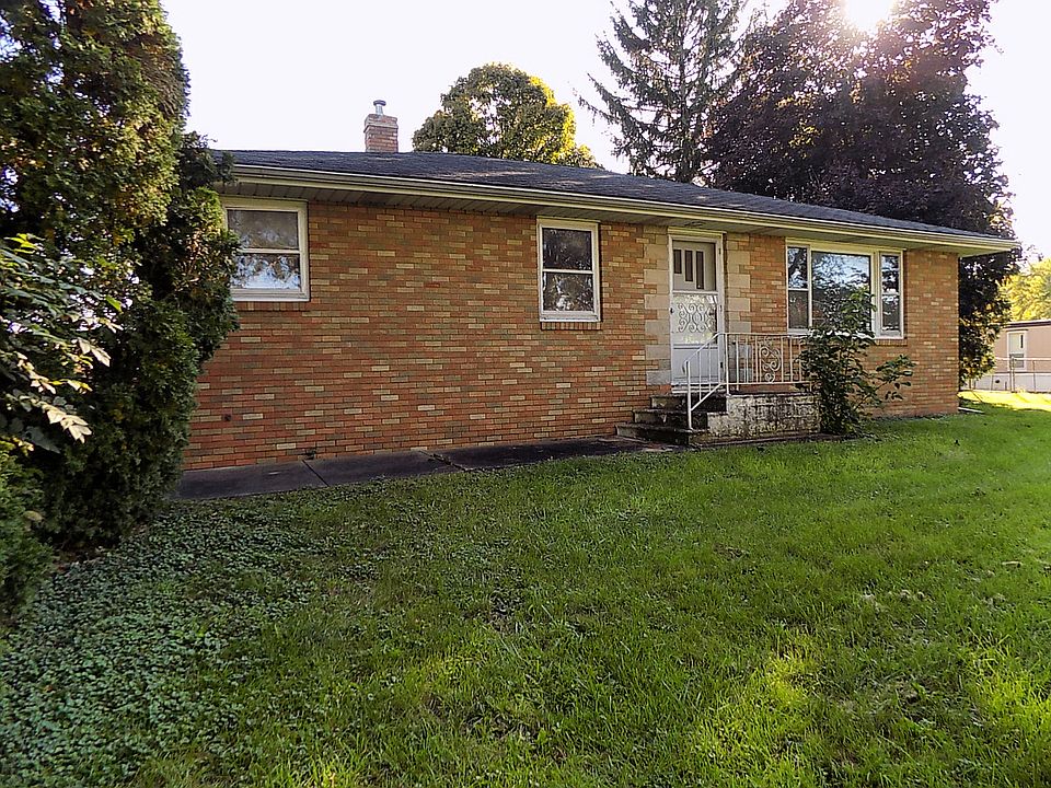 All brick home that needs updating and some TLC. It sets on 2/3rds of an acre with fields behind it. Large mature trees to make you feel like you are "away from it all". Has 2 bedrooms, 1 main floor bathroom and stool and shower in basement. Full basement. Has a 2 car carport but plenty of room to build your dream garage.