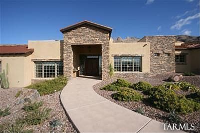 A trio of excellence is found in this striking home: privacy, views & acreage unmatched in Tucson! This custom built dream home constructed in 2006 was designed around casual living & entertaining featuring a 5,83sq.Ft 5 bedroom + library main residence + 1072 SF 1br/1ba guest house. Private gated entry, walls of windows, high ceilings, open gourmet kitchen, hand scraped hardwood floors & custom doors and moldings throughout. Expansive heated & cooled patio makes for perfect year around Al'Fresco dinning & outdoor living. Inviting pebbletec pool/spa, outdoor fireplace & built-in BBQ. Situated on 6.5 acres backing to the National Forest. This home has ultimate privacy & stunning views from every room. Only the highest quality of finishes & attention to detail were used in constructing this masterpiece.
