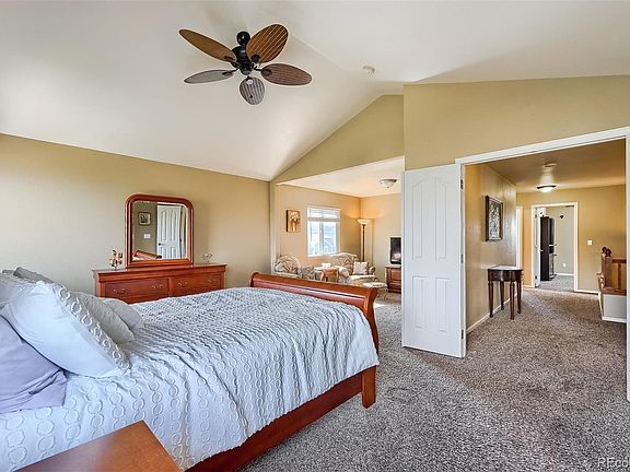 Architectural features include raised & vaulted ceilings, wood & tile flooring throughout the main living area, arched doorways, custom niches and build-is throughout. The main floor hosts several areas for entertaining including a sitting room, formal dining area, an open eat-in kitchen equipped with ample storage space, granite counters, stainless appliances, views of both the great room and the beautiful outdoor entertainment deck that has beautiful front range views as well as a private office & half bath for visitors. The upper floor has (3) spacious guest bedrooms all with views of the surrounding rolling hills, a shared full bathroom with 2 sinks, and a sprawling master suite that is large enough for both a sitting area and small fitness space for those not wanting to go far for a morning workout. This retreat space abuts to a private 5pc. ensuite and a California closet most of us dream of.