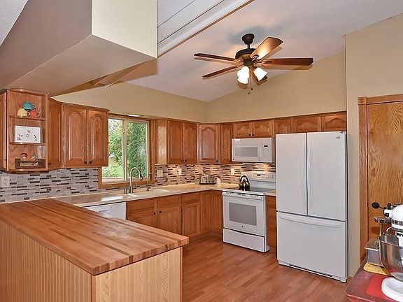 Tastefully Updated. Beautiful mature neighborhood on the north side of town near parks. This tastefully updated 4 bedroom, 2 full bath home features a gorgeous 2 tiered deck overlooking a flower garden, newer windows, shingles, vanity, back splash, butcher block island, counter tops, custom sink and flooring. The open and warm feel is a must see to appreciate.