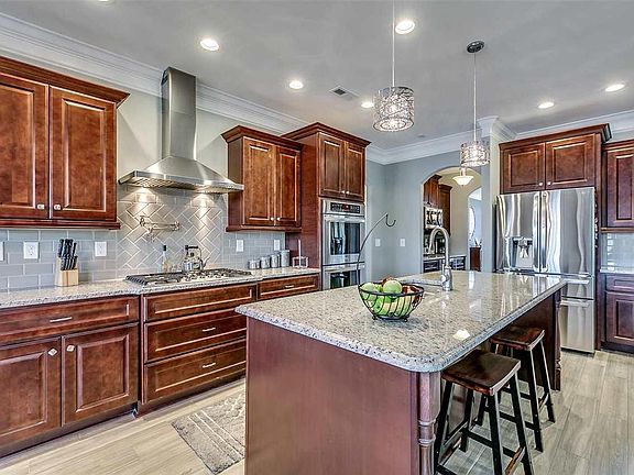 • Features: Breakfast Bar, Breakfast Area, Kitchen Exhaust Fan, Kitchen Island, Pantry, Stainless Steel Appliances, Solid Surface Counters