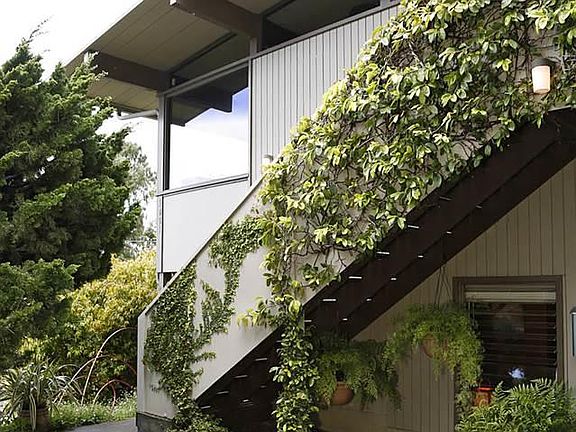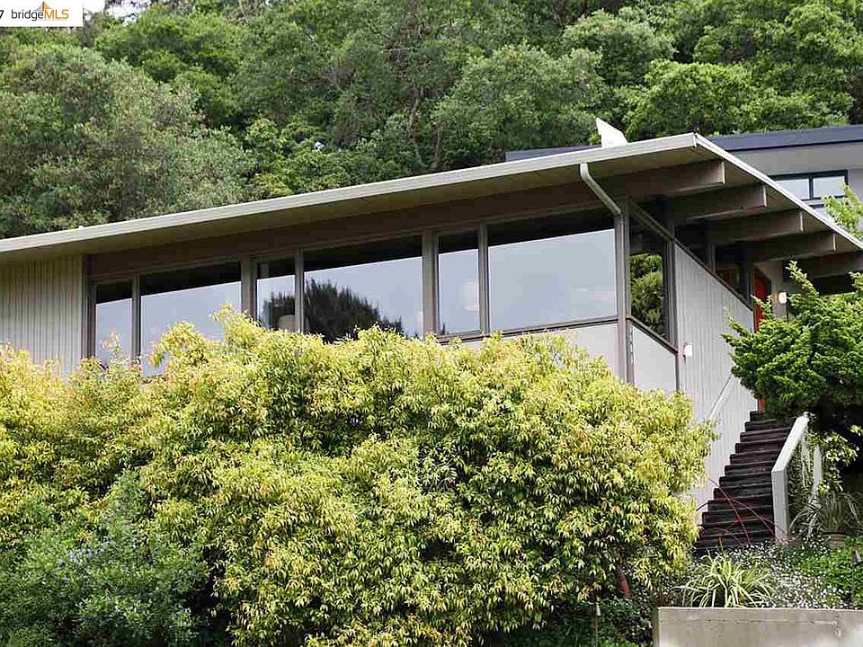 Exceptional Roger Lee designed mid-century jewel! Broad Bay views, Lovely gardens, classic redwood interiors! 2 bds + study on main level and sep. bedrm & bath with level entry. A very special home!