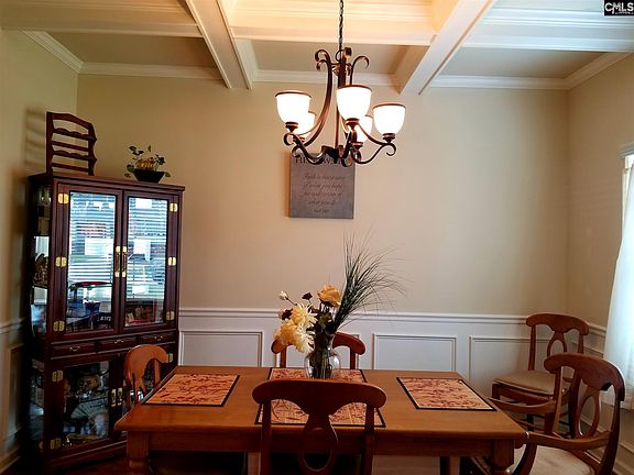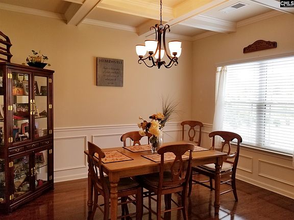 This stately manicured home is a "must-see." Over 2300sqft custom built, 4 bedroom, 2 1/2 bath house features a grand entry w/high ceilings and glistening hardwoods. Coffered ceiling & custom molding throughout formal dining room. Spacious kitchen w/eat-in opens to living room w/fireplace. Kitchen features tile flooring, sparkling granite counters, tile back-splash, gas range, center island, and custom cabinets. Mudroom w/separate laundry just off kitchen. Master bedroom has "double-tray" ceiling with separate sitting area. Walk-in closet is HUGE! Master bath retreat has custom tiled shower, double vanity, garden tub, WC, and tile flooring. Full privacy fence surrounds the the meticulous "park-like" backyard setting. With close proximity to Ft. Jackson, Shaw AFB, VA & I-77, don't let this one get away!