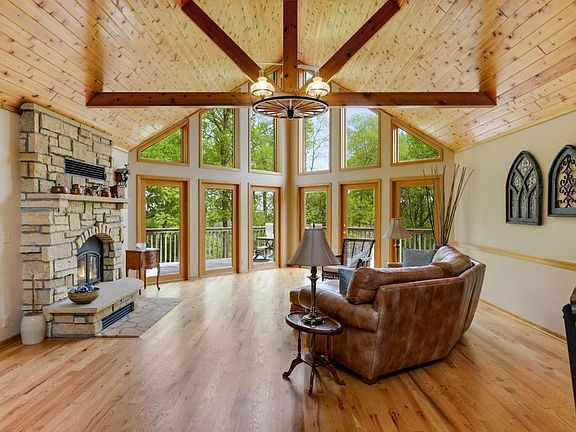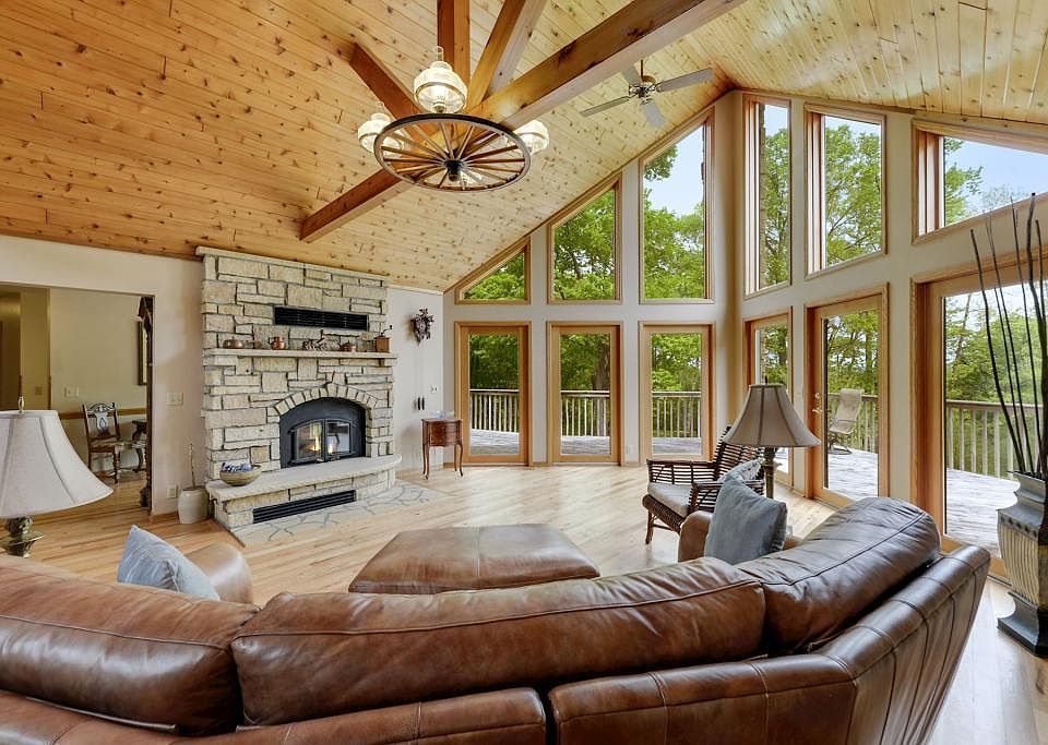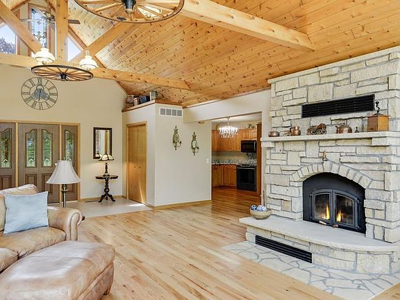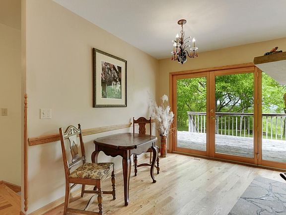 Gorgeous multi-acreage property with beautiful treed privacy, abundant wildlife and stunning hilltop views. Vaulted ceilings with a wall of windows and large deck overlooking the MN River Valley. Generous main floor master with private bath and spacious walk-in closet. Main floor laundry. Lower level includes a family room, amusement room, two additional bedrooms and a 3/4 bath. This property could be subdivided to create additional walk-out homesites. Must see to appreciate!