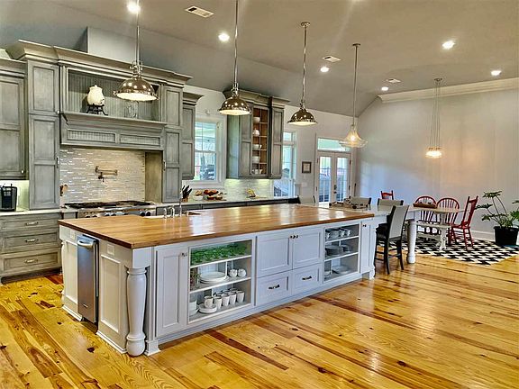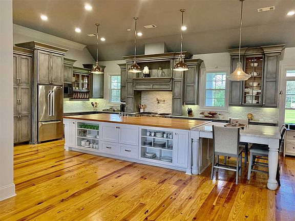 This 3/2 house is a must see! This home is only 5 years old, is just over 3000ft.². It sits on 1 acre and features an open floor plan and pine flooring throughout the main living area, kitchen, and bedrooms. The main space has two large living areas, a farmhouse kitchen, and dining room. There is an oversized brick fireplace with gas logs, sound system, security system, and security cameras in place. The kitchen is huge with a massive built in island/breakfast table. The island surface is a hand built red oak wood top out of Mount Olive Mississippi and the kitchen counters are Carrera marble. ?It features a freestanding kitchen-aid 6 eye gas stove, electric griddle and double-ovens, dishwasher, refrigerator, free standing ice maker, and garbage disposal. The kitchen cabinets are custom built and all drawers have soft close hinges. There is also a custom built pantry and hand carved plate rack?. The guest rooms are spacious enough for king sized beds with plenty of extra room. Each room has large walk-in closets with built-ins and auto on/off lights. The guest bathroom features an extra-large walk in glass/ceramic tile shower with dual shower head and rain head, farmhouse sink, and white marble countertop?. The master bedroom is large enough for a king sized bed and sitting area. The master bathe has an enclosed, glass and ceramic tile walk in shower/tub area, with double shower head and rain head. The flooring is travertine flooring and a white marble double vanity. The attached walk in master closet is extra large with custom built ins. The laundry room/mud room is just off the carport/main living area and features 3 lockers, farmhouse sink with hanging bar for laundry, and the stair access to the attic. The attic is floored and perfect for lots of storage! The home is situated on one acre with a gorgeous pasture view! Call today to schedule a viewing of this gorgeous home!