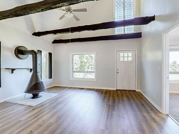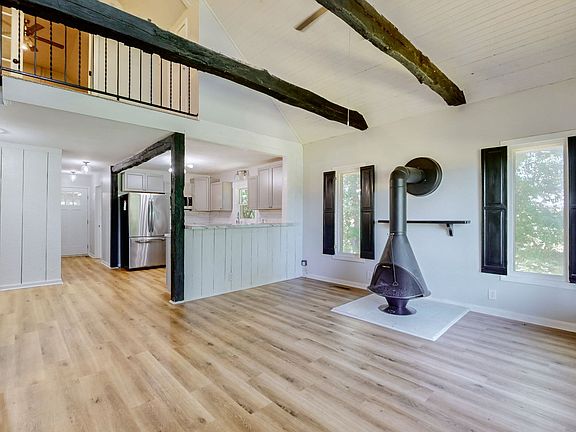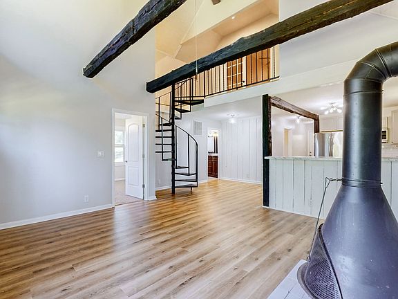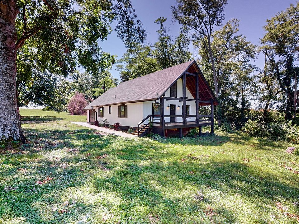 Seller offering $5,500 credit towards buyer's closing costs. A charming slice of tranquility in Hopkinsville, KY! Nestled on just under 4 acres, is a dream home for those seeking a peaceful country lifestyle with convenient access. 3 bedrooms, 2 full baths, and 1,520 sqft of thoughtfully designed space, a perfect blend of coziness and functionality. An updated kitchen flows into an inviting living room where a unique mid-century wood-burning fireplace takes center stage, complemented by vaulted ceilings and exposed wood beams, creating a rustic yet contemporary ambiance. A distinctive spiral staircase adds architectural interest, leading to a private master suite, a retreat within a retreat. The property also includes a large covered deck, brand new roof and new septic. Whether you dream of adding more living space, cultivating a thriving garden, or even raising a few animals. Nestled just under 15 minutes from Fort Campbell and just a few minutes away from downtown Hopkinsville.