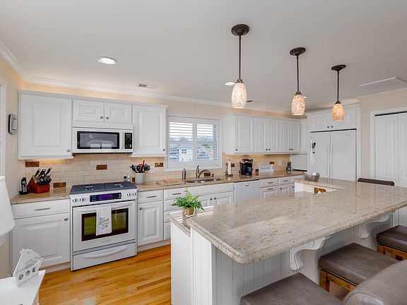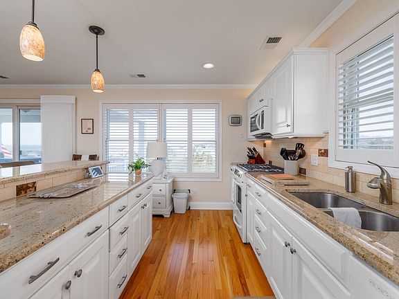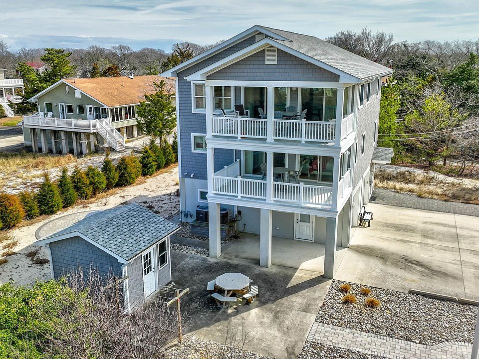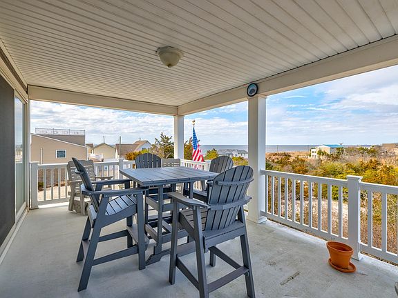 Delaware Bay views abound from this custom 3 BR/4 BA home that is situated only one block to the beach. Otis four person elevator with access to all floors. The third level offers a great room with two sliders that lead to an expansive deck; one bedroom that is presently utilized as an office; and a full hallway bathroom. The second floor incorporates a spacious suite with access to a private deck; private bathroom that includes dual sinks, tiled shower and separate bathtub; a guest bedroom; laundry room with dual basin utility tub; and a full hallway bathroom. The first level has a foyer way; full hallway bathroom; utility room; and two car garage. Outdoor areas include two paver patios; shed; flagpole; sprinkler system; and storage shed. Features include partial furniture; tile and hardwood floors; custom Hunter Douglas Window Fashions; security system; and on-demand natural gas hot water heater. Sale includes custom low speed vehicle with seats for four people. Seller Disclosure and Additional Documentation available.